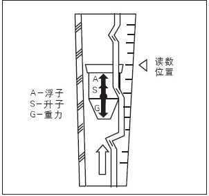 塑料管浮子流量計成豐儀表的一款變面積式流量計,主要由一根自下而上擴大的ABS/AS錐形管和一只可隨流體流量大小上下移動的浮子組成。當流體自下而上流經錐管時,流體動能在浮子上產生的升力S和流體的浮力A使浮子上升,當升力S與浮力A之間和等于浮子自身重力G時,浮子處于平衡,穩定在某一高度位置上,錐管上的刻度指示流體的流量值。如圖所示
