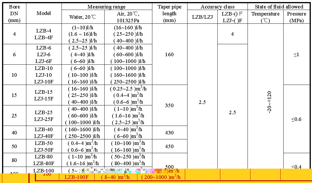Material of flange、floater、guide rod、bearing plate and bolts are stainless steel 304(1Cr18ni9Ti ),model is of LZB-( )B.