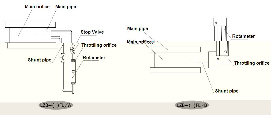 LZB-FL series rotary shunt flow meter is a kind of instrument composed by throttling device(orifice plate) of main pipeline and rotary flow meter(glass tube flowmeter,metal tube flowmeter) of separate pipeline,which can get the main pipeline flow through measuring the separate pipeline flowrate.